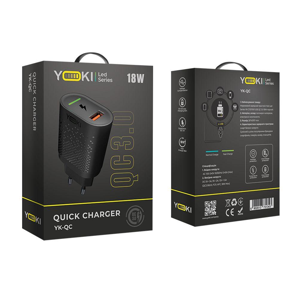 Мережевий зарядний пристрій Yoki Led Series YK-QC 3.0 18W USB Output, Black